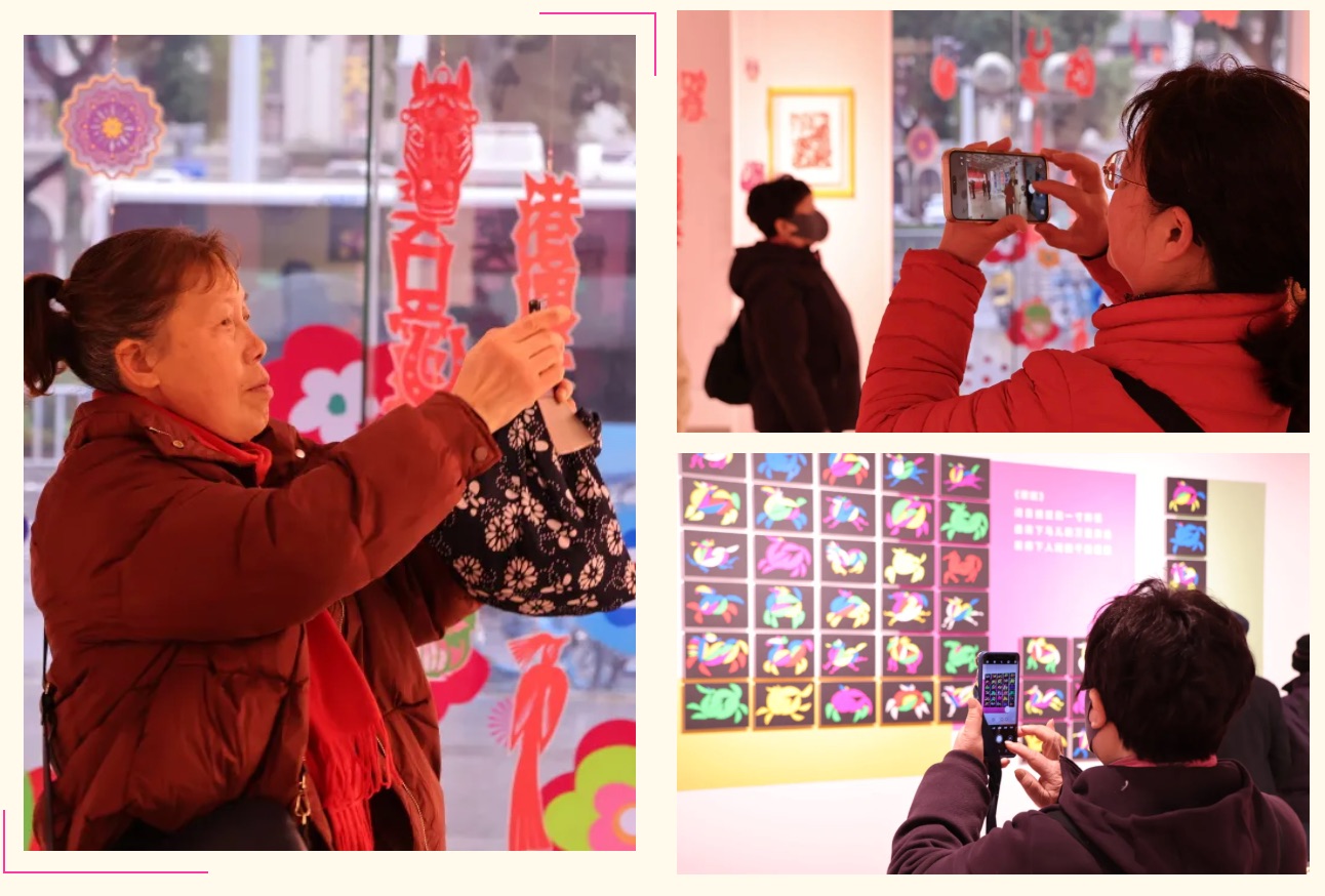 魏晓红深耕剪纸艺术三十余载,本次展览既是她数十年剪纸技艺积淀的集中呈现,更融合了传统剪纸与现代创意的鲜活气息。作品不再是印象中传统剪纸的复刻,而是以“骏马”为核心意象,将马年“龙马精神”的吉祥寓意,与当代审美、宁波地域文化相结合,用灵动的线条、大胆的构图、多元的色彩,让剪纸从“窗纸”走向“展厅”,从“民俗装饰”变为“艺术作品”,让红色记忆在镂空光影中流转,让传统文化在匠心巧思中延续。