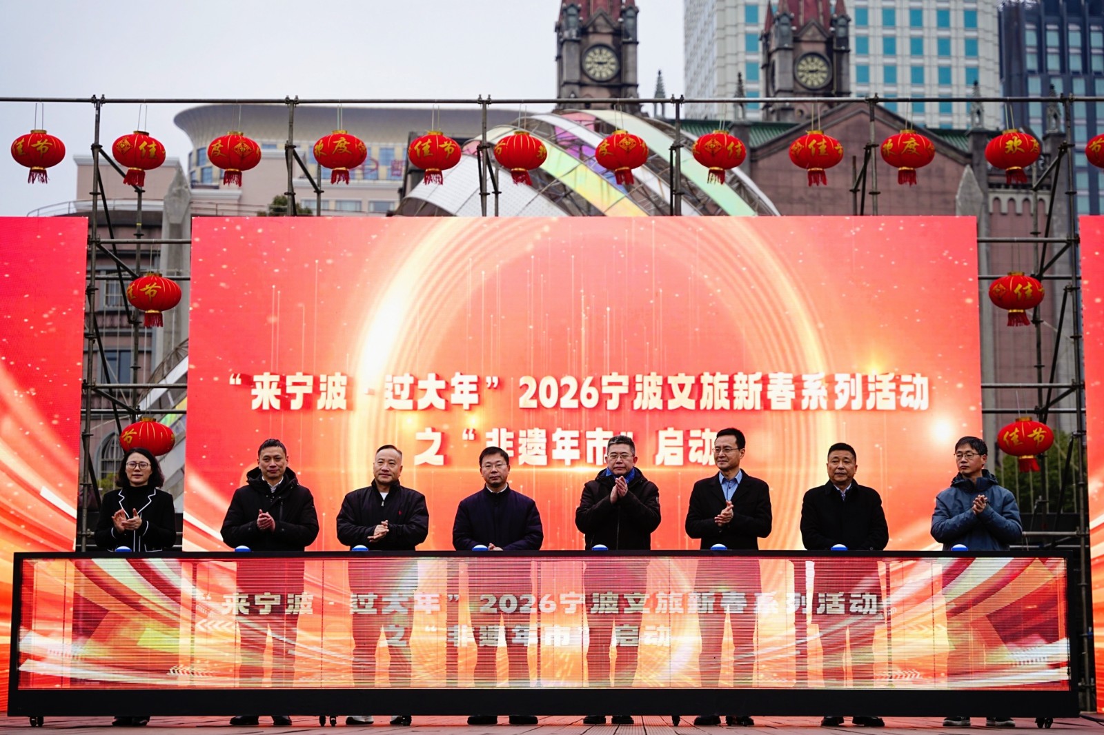 为营造欢乐祥和、年味浓郁的春节氛围,激发假日消费活力,积极响应文化和旅游部“非遗贺新春 寻味中国年”活动号召,2026年2月7日,由宁波市文化广电旅游局主办的“来宁波·过大年”2026宁波文旅新春系列活动之“非遗年市”在天一广场正式启动。本次活动紧扣文化惠民、促进消费、增强节日气氛目标,通过一场规模盛大、形式新颖的非遗盛宴,为市民游客送上文化大礼,也为马年春节注入了澎湃的文化温度与消费动能。