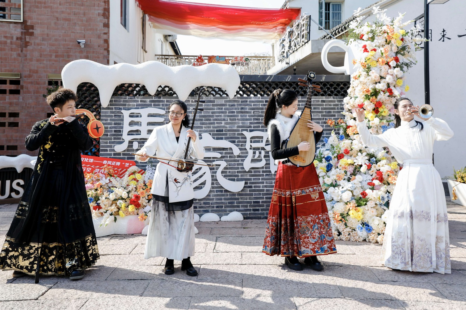 2月8日,由宁波市文化广电旅游局主办,宁波市文化馆、慈溪市文化和广电旅游体育局承办,慈溪市文化馆、宗汉街道综合文化站执行承办,奉化区文化馆协办的“跃马飞歌迎新春”2026城市音乐漫游系列活动的最后一站于慈溪马家路村圆满落幕。这座古韵悠长的村落,不仅承载着深厚的历史记忆与乡土情怀,也是辛亥革命烈士马宗汉的故居。在此举办音乐漫游的终章,恰似一场跨越时空的对话,让跃动的音符与沉默的砖瓦共鸣,以当代艺术的形式致敬往昔、温暖今朝。